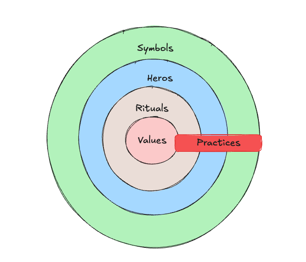 The visible aspects of culture are its symbols, heroes, and rituals, and these are the elements we can see, hear, or observe in everyday practice. The real meaning behind these things is connected to values, beliefs, and practices. This drives emotions, and this is invisible and intangible.