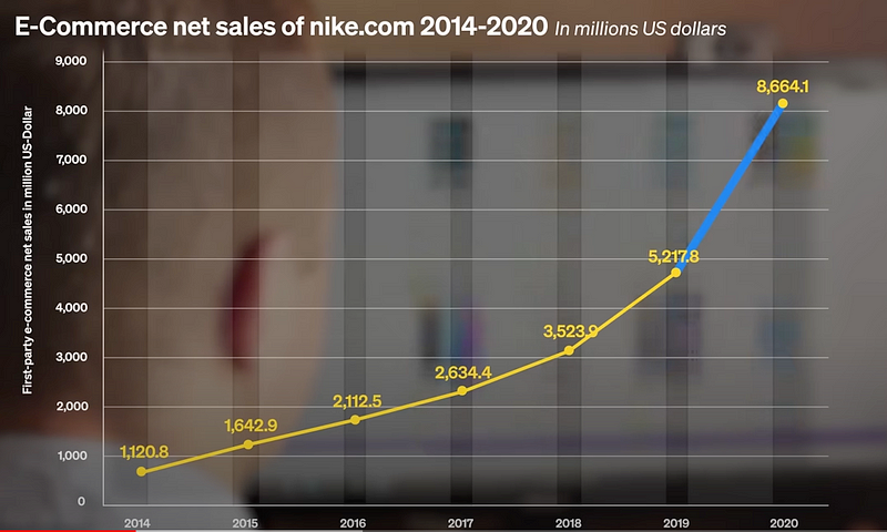 By the end of 2020, the digital initiatives started paying off and the sales from the app doubled and 20% of Nike’s sales were through digital channels.