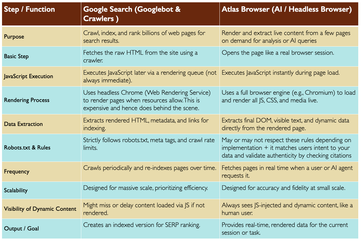 It used to be a world where website data was optimized for bots and crawlers, just to appear on the SERP. That game is changing. Browser agents like Atlas will now render your site, execute your JavaScript, and extract exactly the information the user is looking for.
